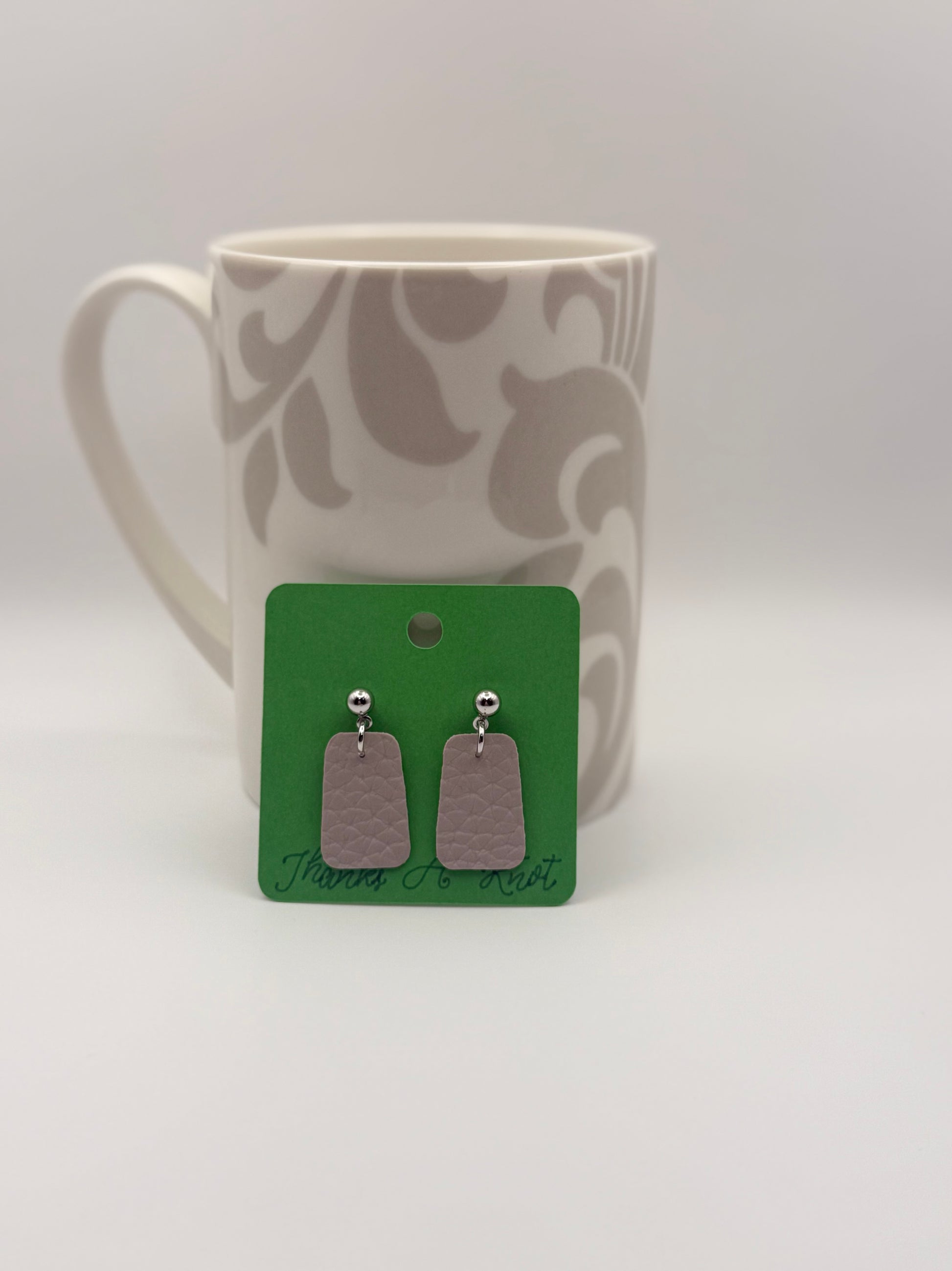 Grey, textured faux leather stud earrings. Silver ball studs. Silicone earring backs included.