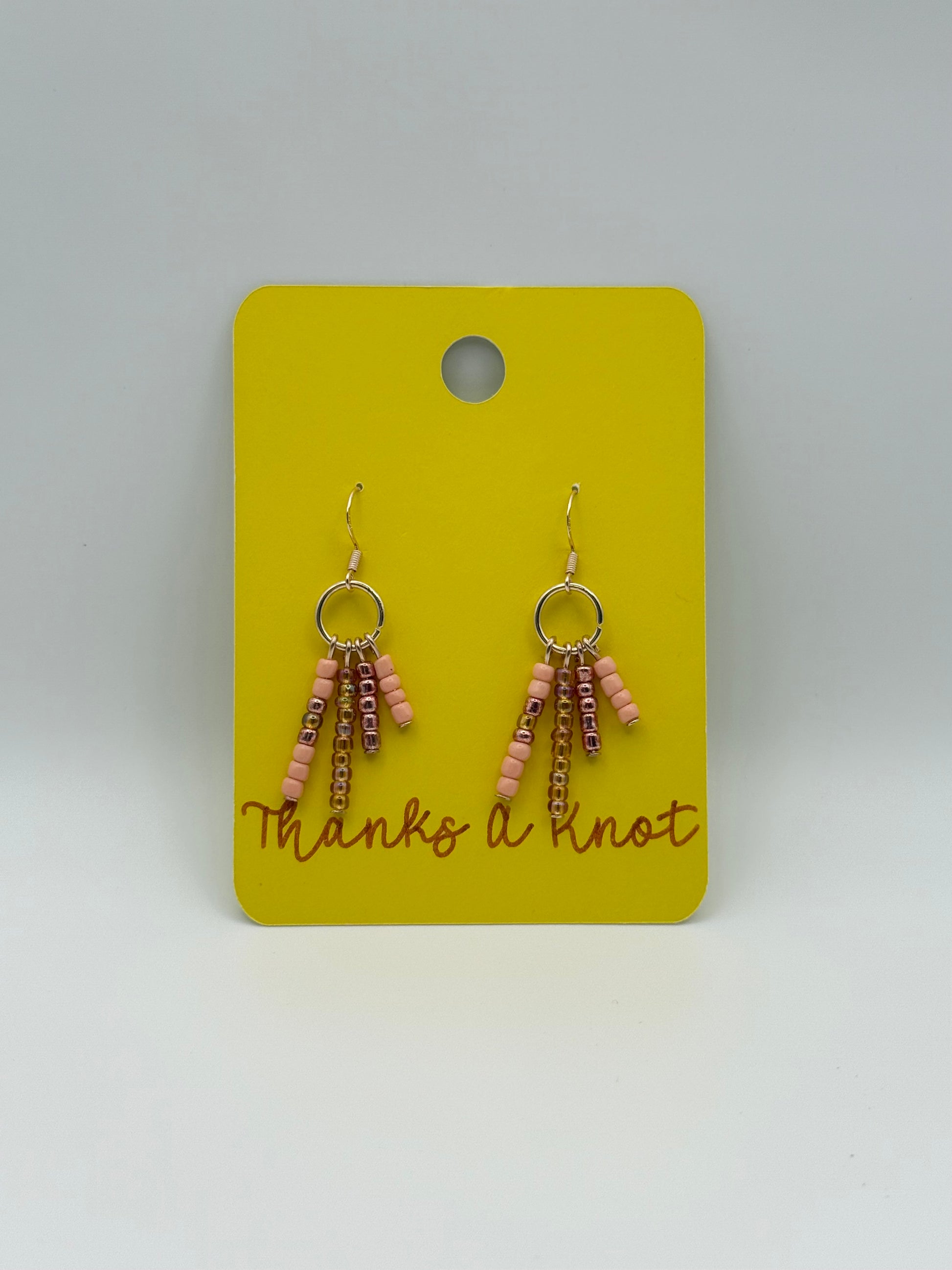 Light pink and iridescent pink/gold beads. Rose gold findings and ear hooks with silicone earring backs included.